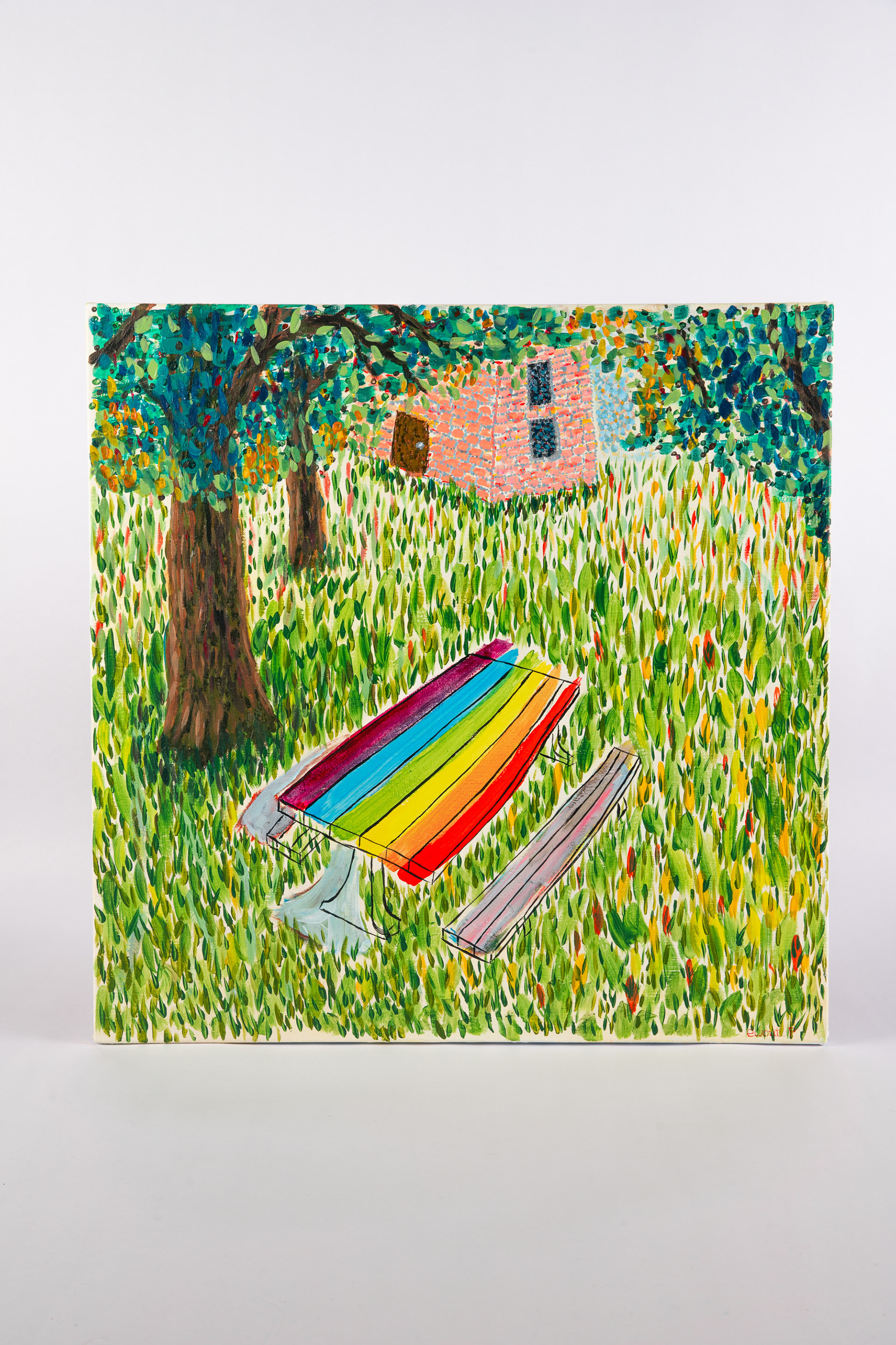 De lgbtq-bank - acrylverf op doek - 75x75cm